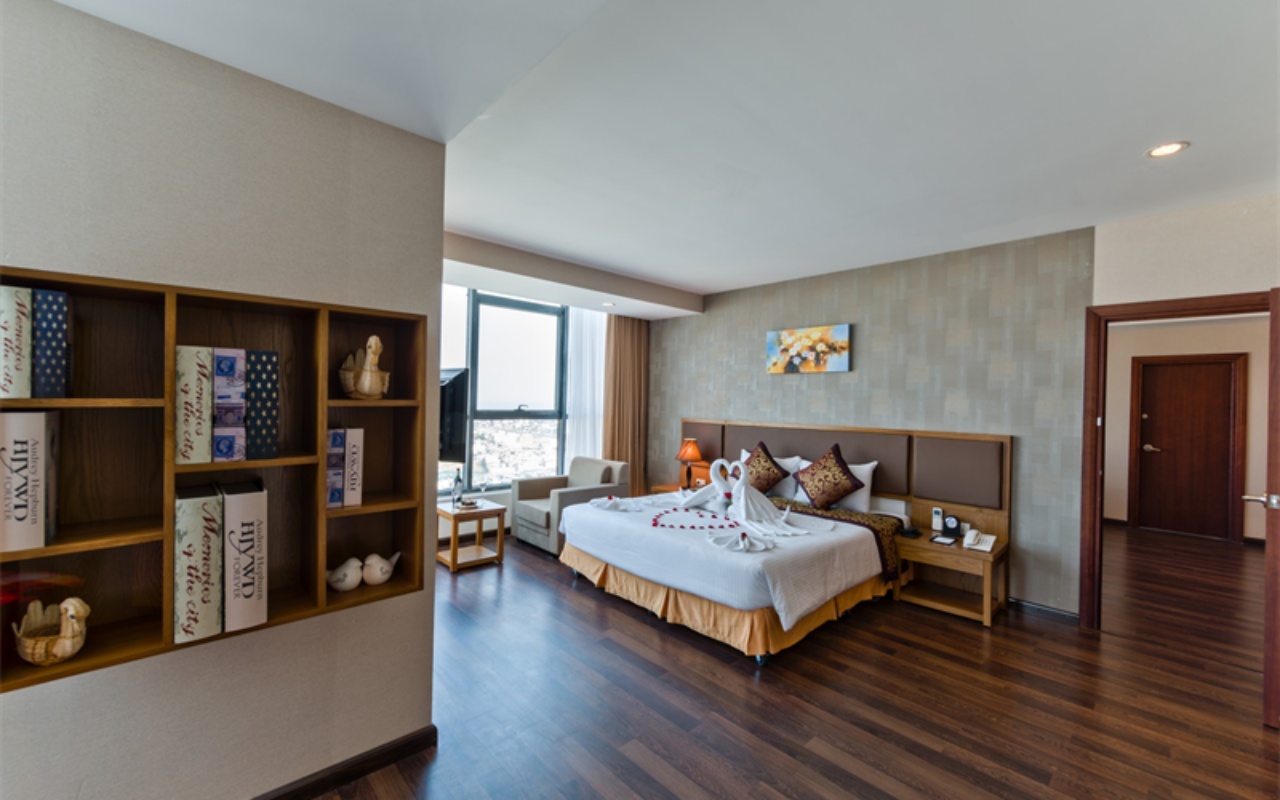 Hạng phòng sang trọng nhất tại khách sạn với phòng khách riêng, không gian mở, nội thất cao cấp và tầm nhìn toàn cảnh thành phố tuyệt đẹp. Một lựa chọn hoàn hảo cho khách VIP, doanh nhân, hoặc du khách mong muốn trải nghiệm cao cấp.