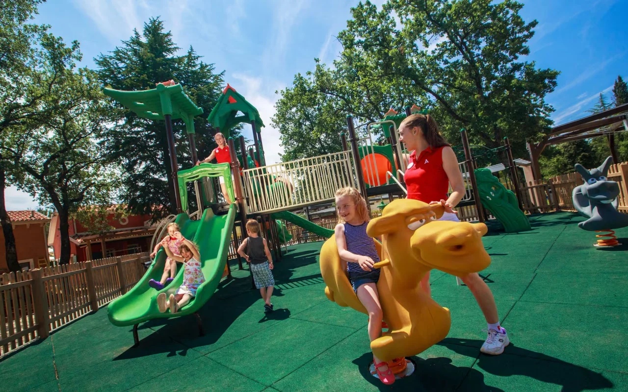 Khu vực ngoài trời dành riêng cho trẻ nhỏ với nhiều trò chơi hấp dẫn như xích đu, bập bênh, cầu trượt, giúp các bé thỏa sức khám phá và vui đùa trong môi trường an toàn và thân thiện.